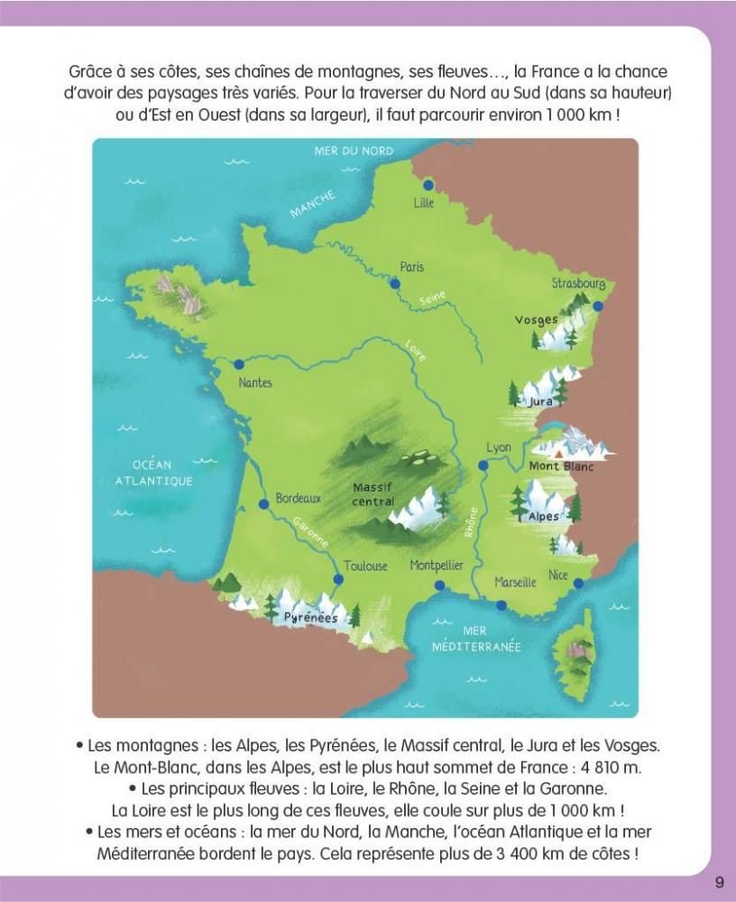 L'enfant va faire un fabuleux voyage à travers la France et les départements et territoires d'Outre-mer. Région après région, il découvrira les sites, les paysages, l'habitat, les activités, les fêtes et traditions, les spécialités gastronomiques de notre beau pays ! L'imagerie de la France est aussi un livre précieux pour voyager avec les enfants. A partir de 6 ans