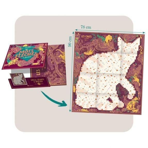 Testez vos connaissances sur les chats en famille ou entre amis en suivant les flèches de cette grille unique en son genre : un format XXL (90 x 78 cm) qui se remplit… et se replie avec des heures de plaisir en perspective.